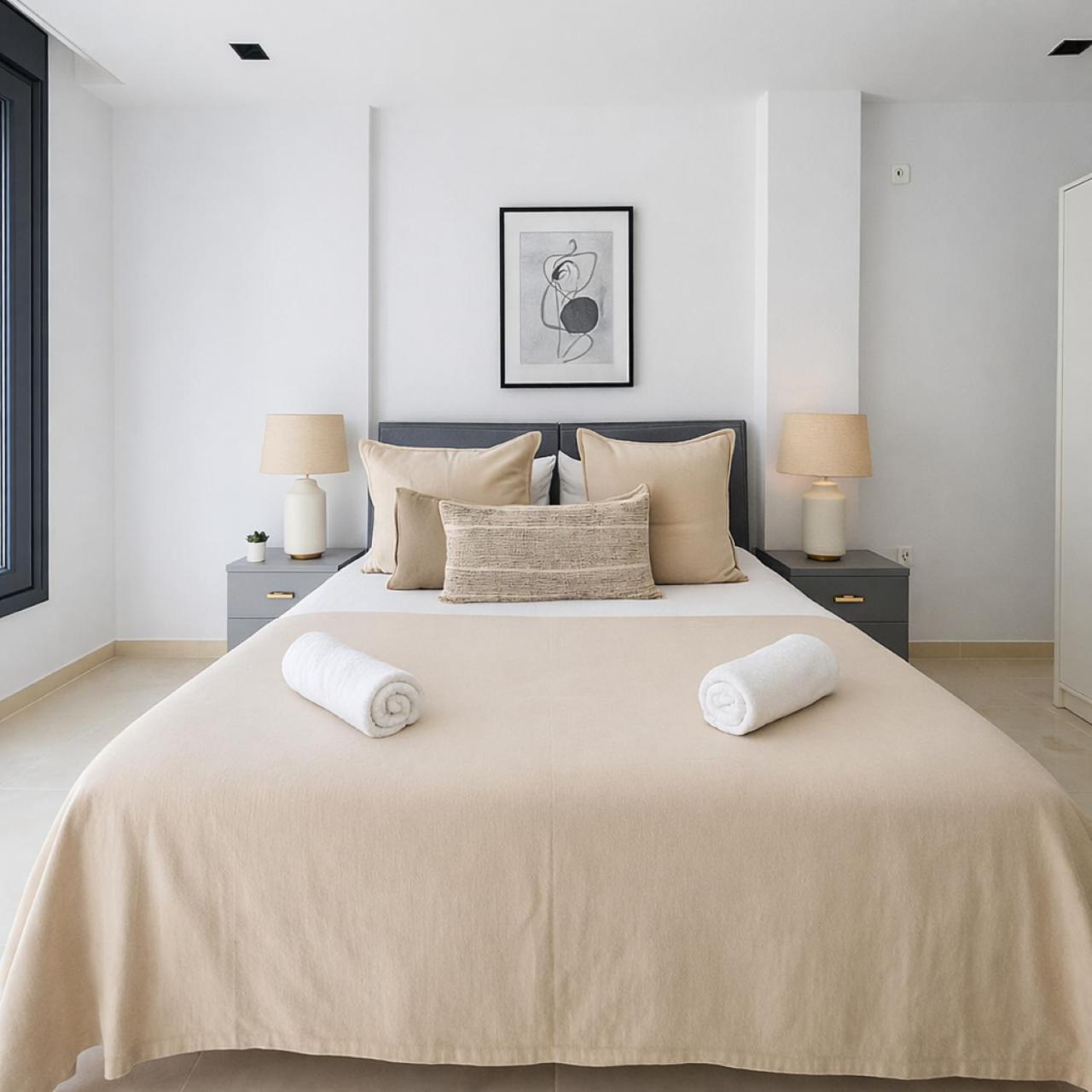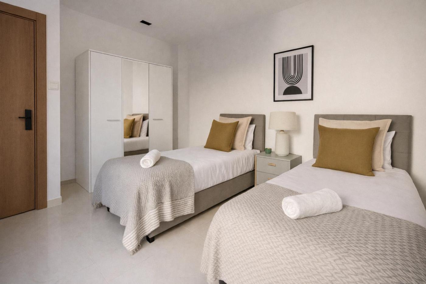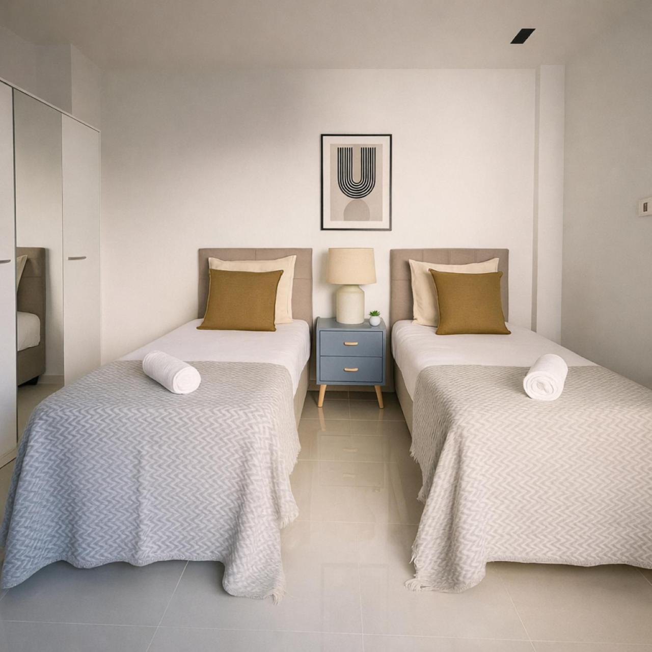 Two-Bedroom Apartment. This spacious apartment is comprised of 1 living room, 2 separate bedrooms and 1 bathroom with a bath and free toiletries. Guests can make meals in the kitchen that comes with a stovetop, a refrigerator, a dishwasher and kitchenware. This air-conditioned apartment comes with a dining area, a flat-screen TV with streaming services a washing machine and a balcony. The unit offers 4 beds.